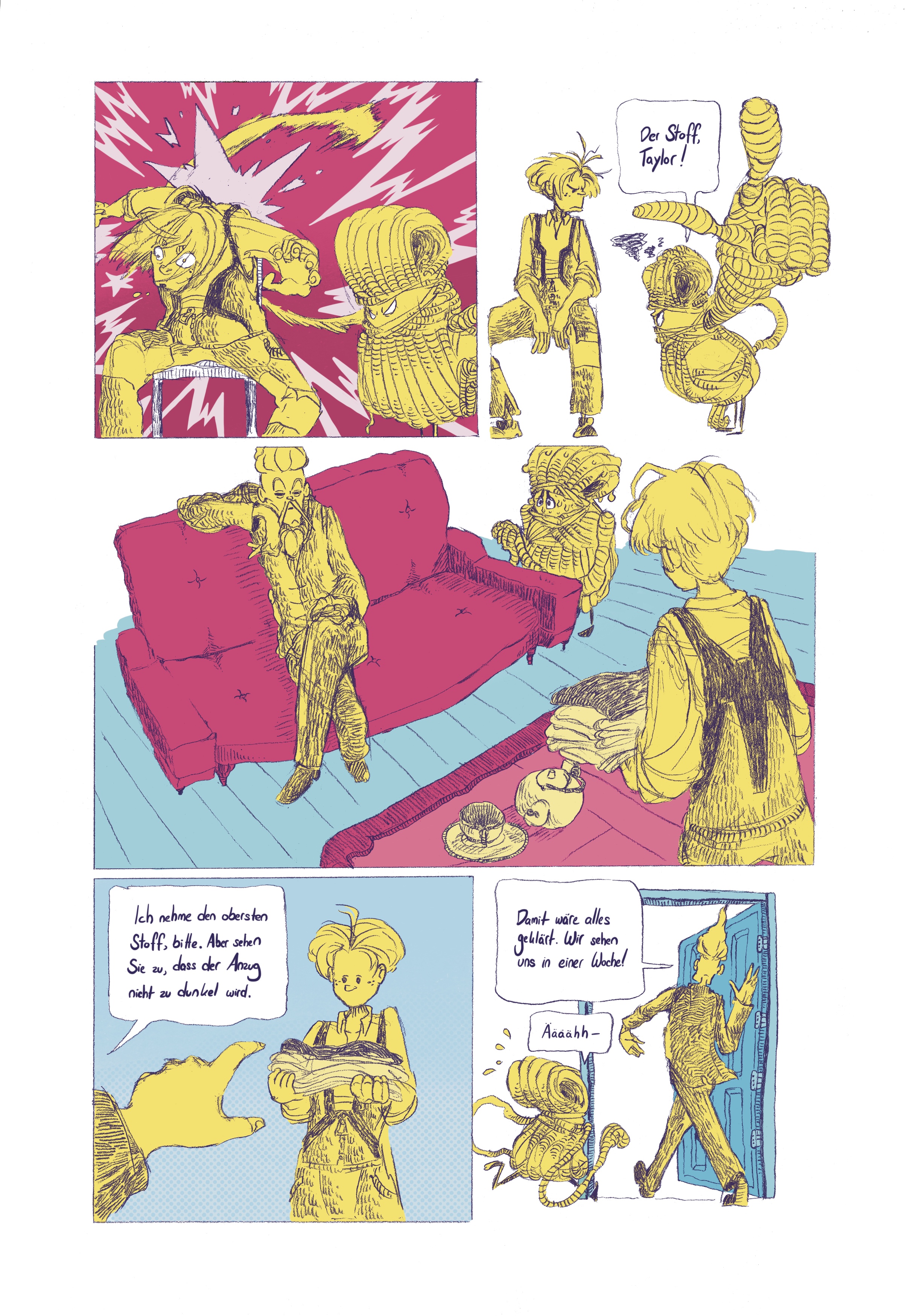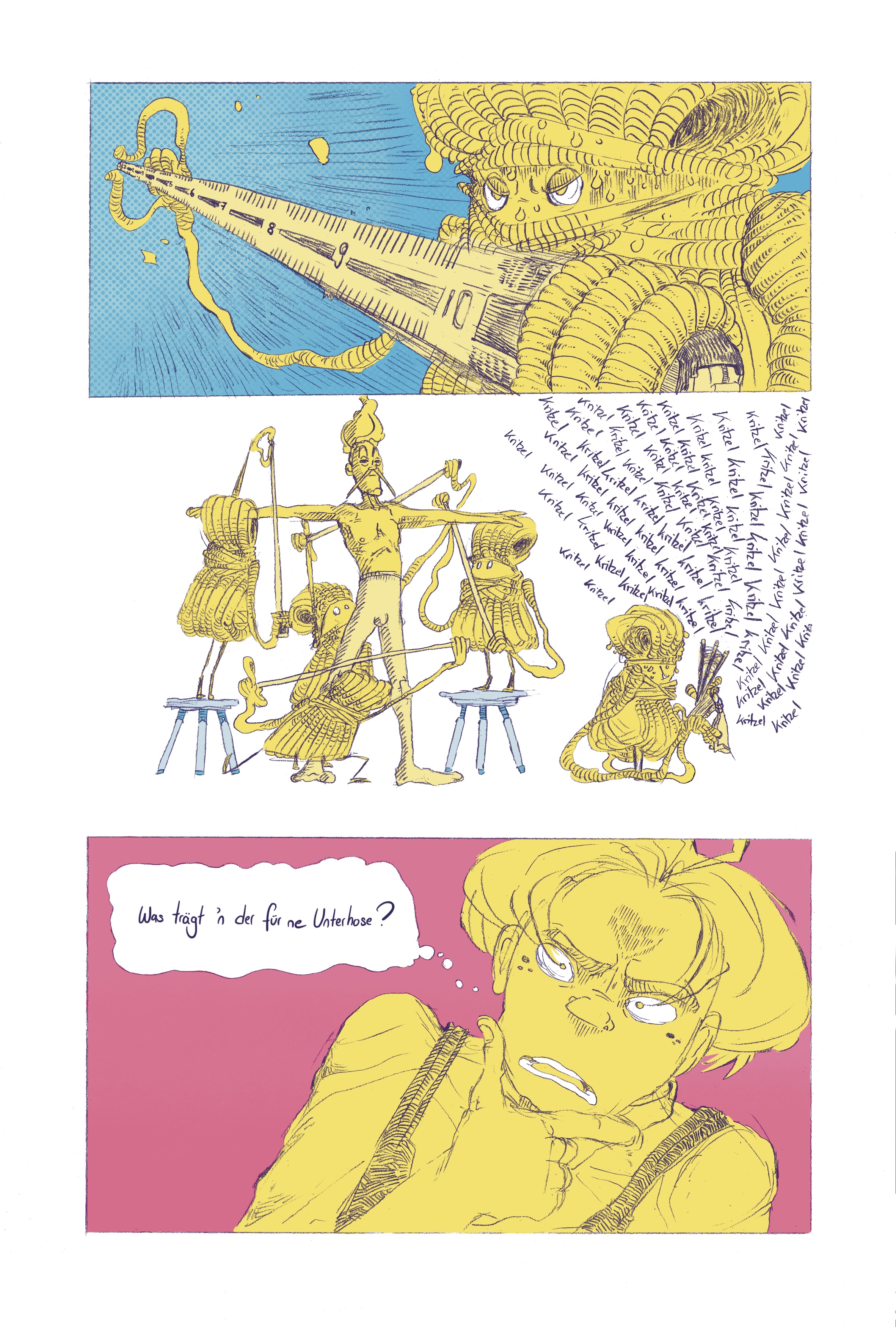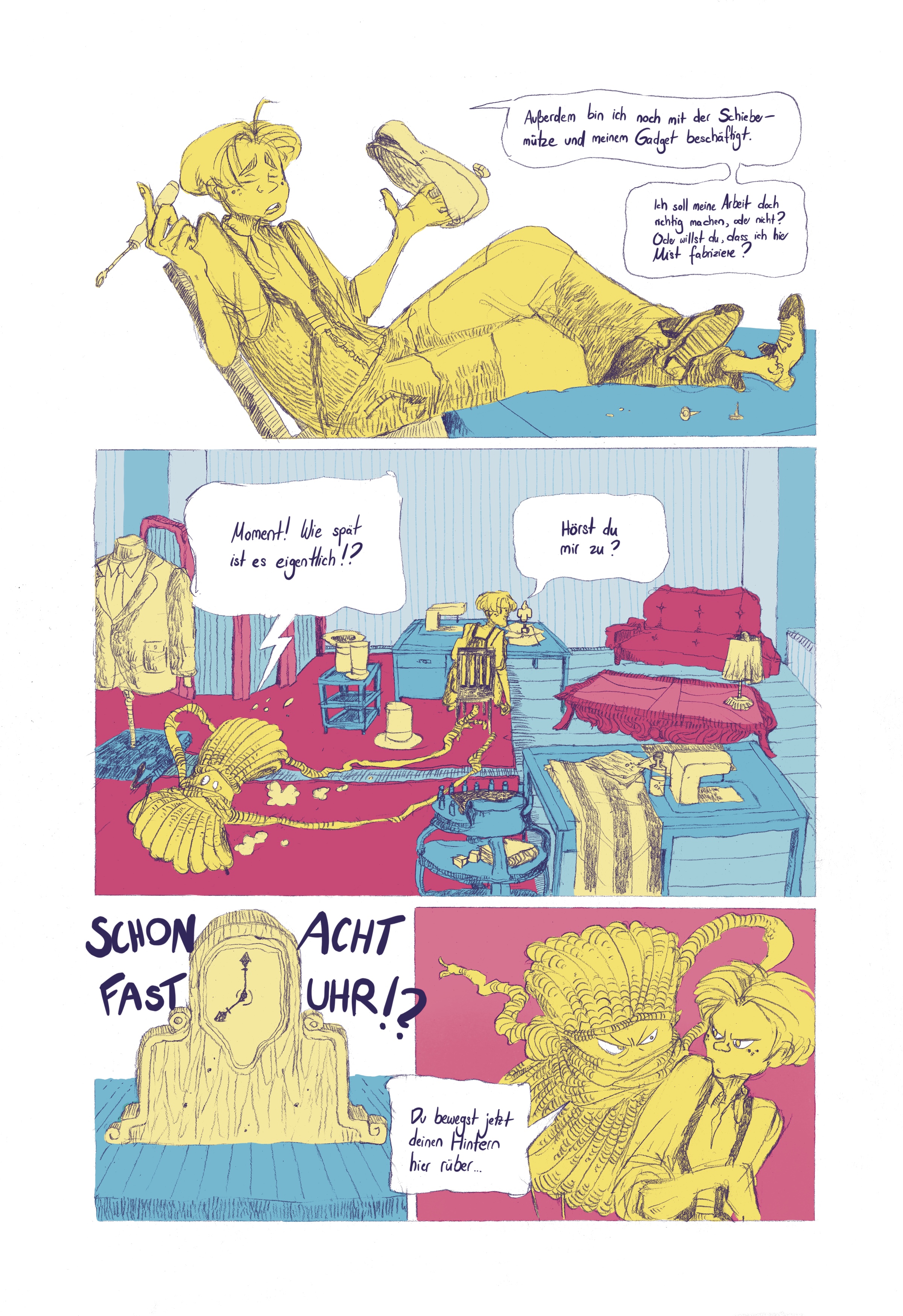 As I chose a small piece of yellow barn and always wanted to create a monster-adventure-story à la Pokemon or Digimon, I quickly came up with a concept, that was enough to fill 5 volumes of graphic novels. The comic you see here, is meant to be the first chapter of a story that will never be concluded…